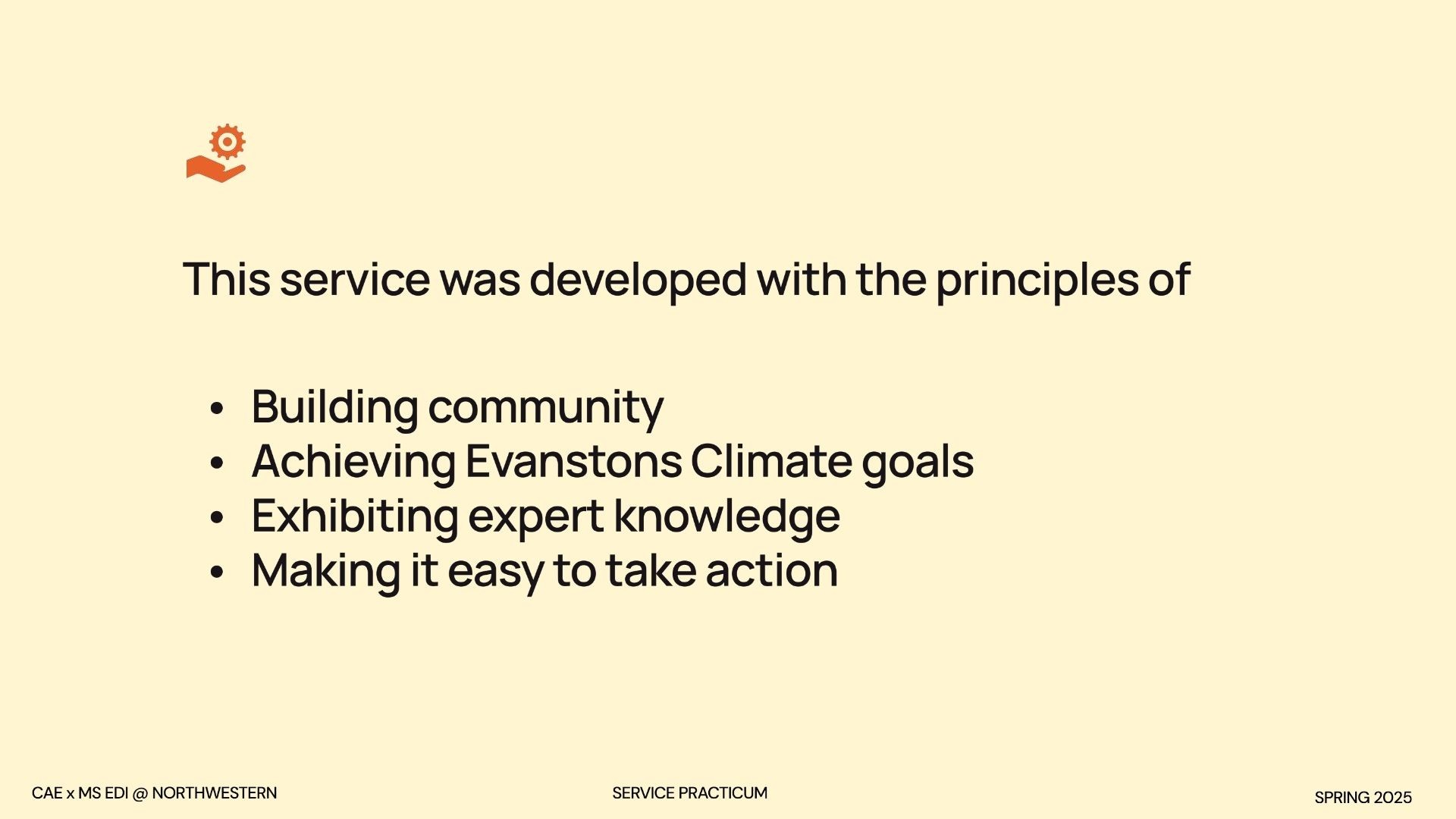 Creating a service for a non-profit with the primary goal of empowering Evanston residents to improve their home’s energy efficiency, helping them reduce their carbon footprint and achieve the city's climate goals.