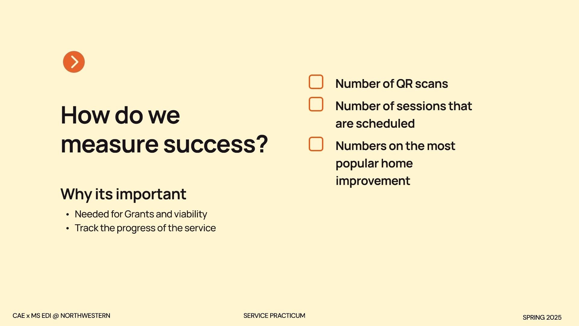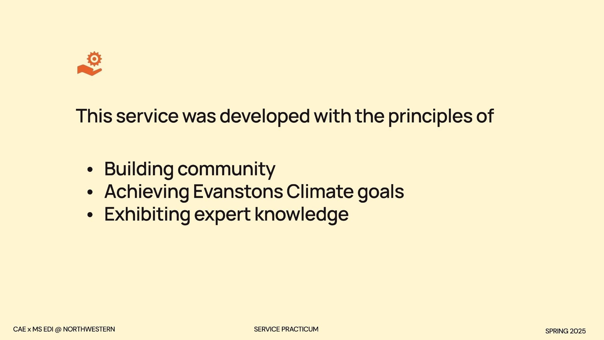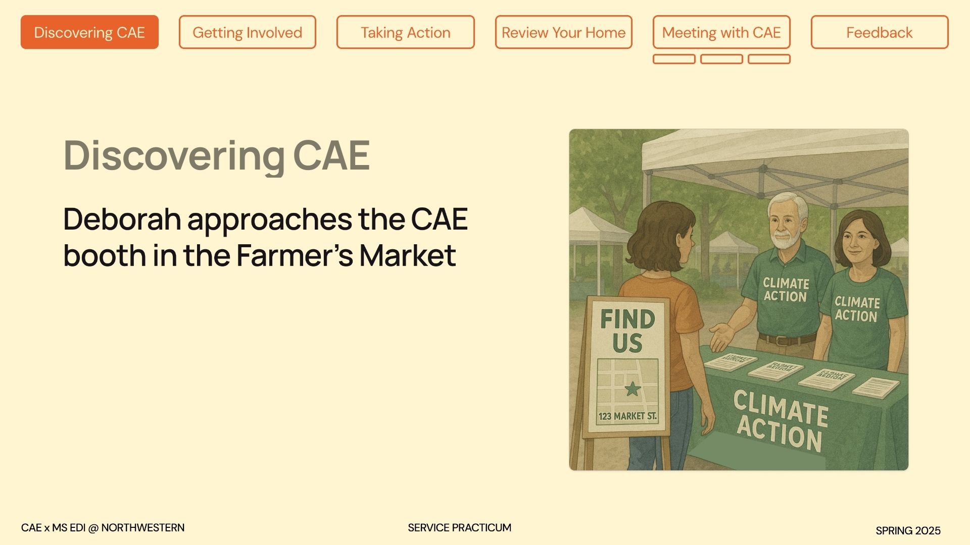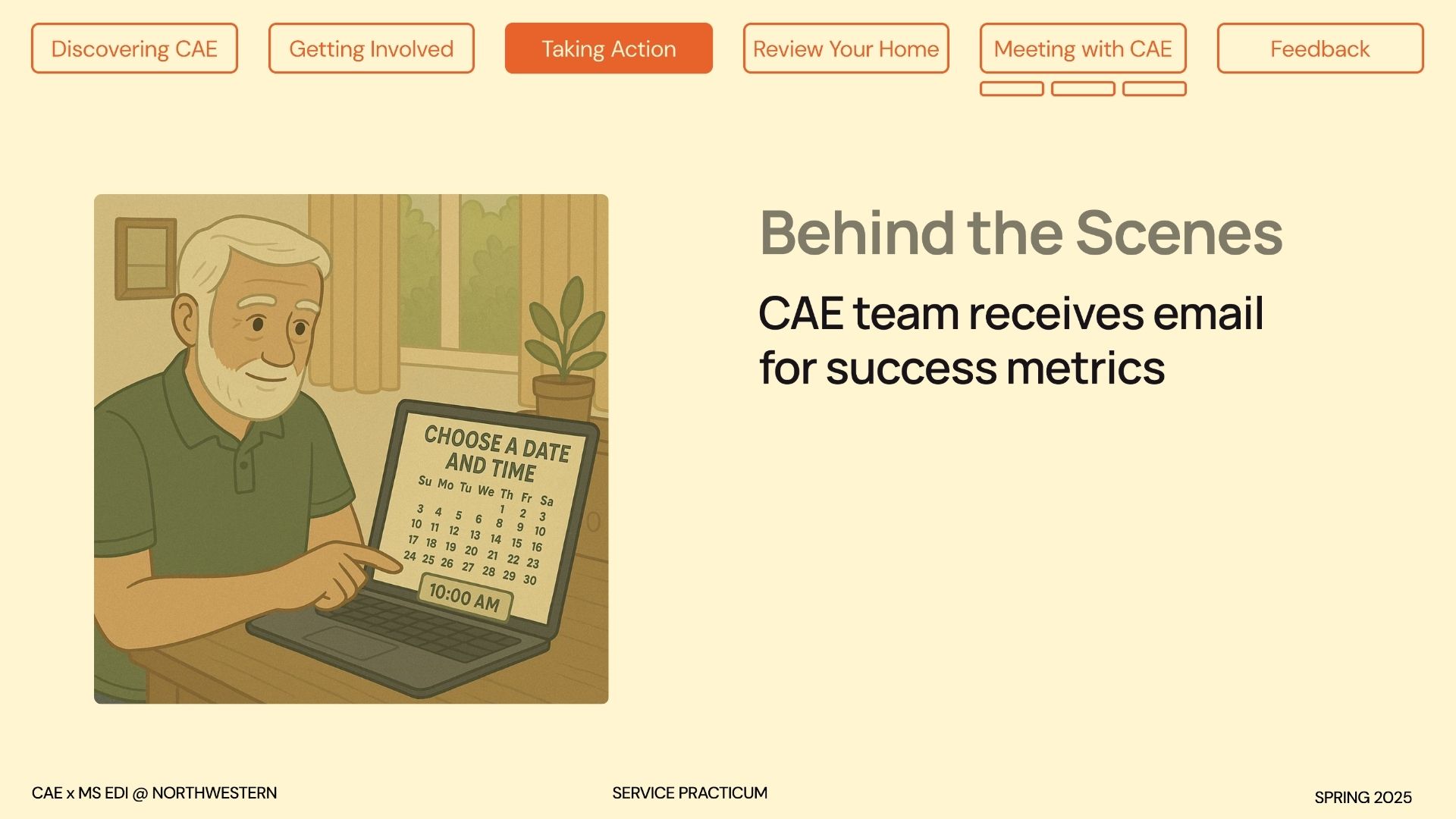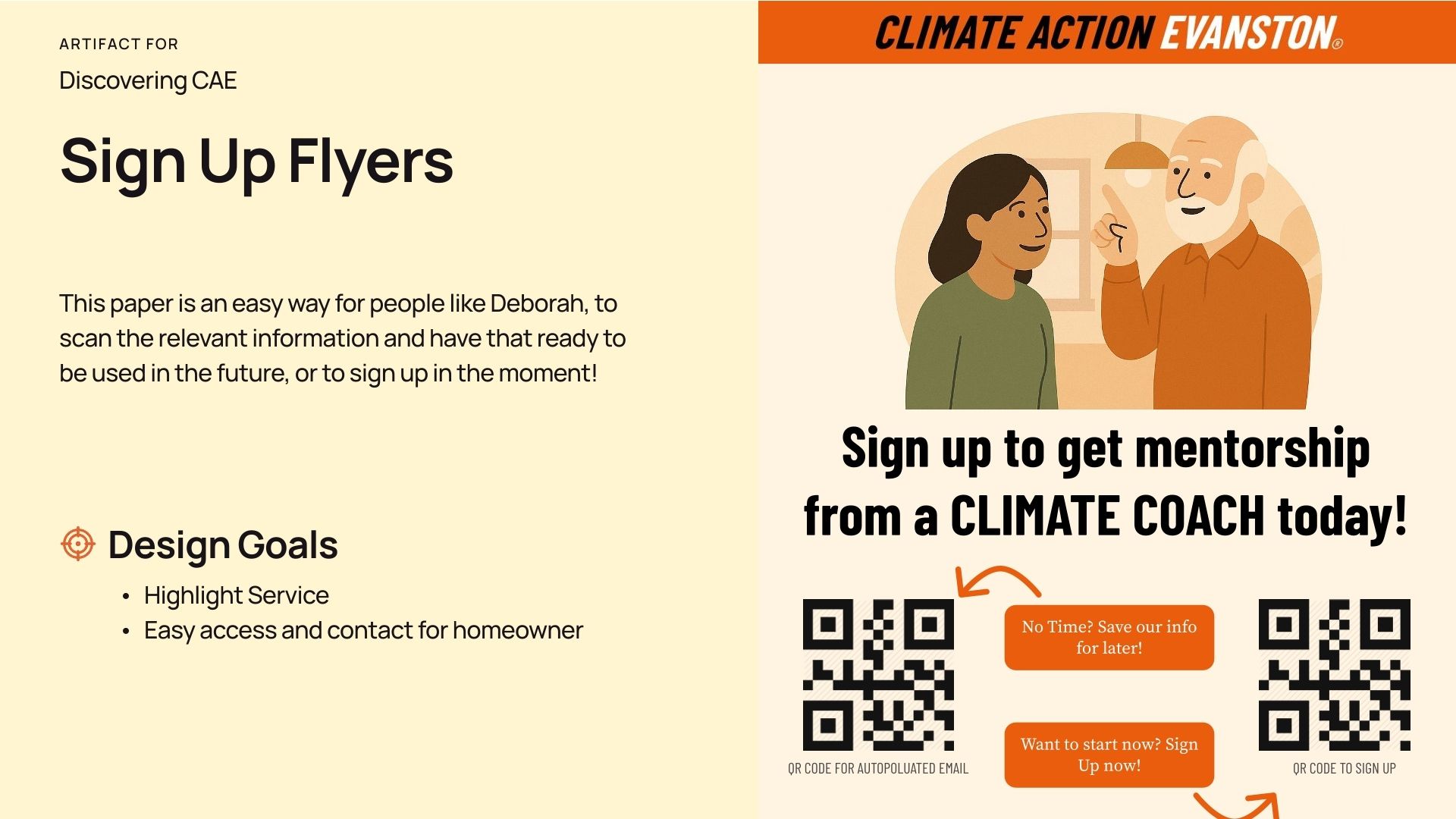 The service was designed with measurable KPIs—such as QR scan rates, session completion data, and implementation tracking—to support CAE’s future grant proposals and operational scaling. By establishing a clear training framework for volunteers, we've created a sustainable model that CAE can pilot and iterate upon to meet Evanston's 2026 climate targets.